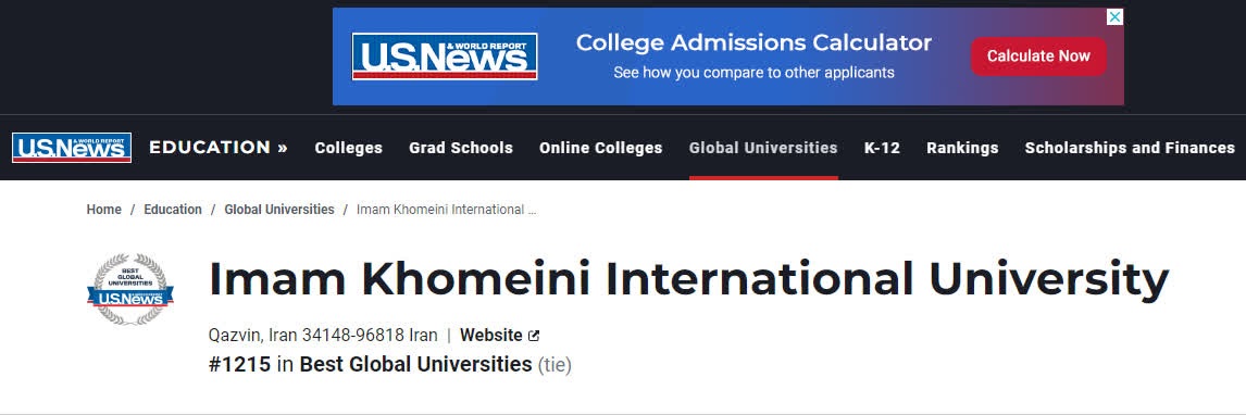 ارتقای 250 پلهای جایگاه دانشگاه بینالمللی امامخمینی(ره) در رتبه بندی USNews